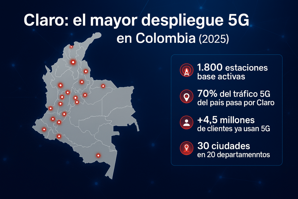 Durante Andicom 2025, uno de los eventos con mayor relevancia de la industria tech en Colombia, Claro anunció un nuevo hito para el país: la llegada de su red 5G a 30 ciudades en 20 departamentos.